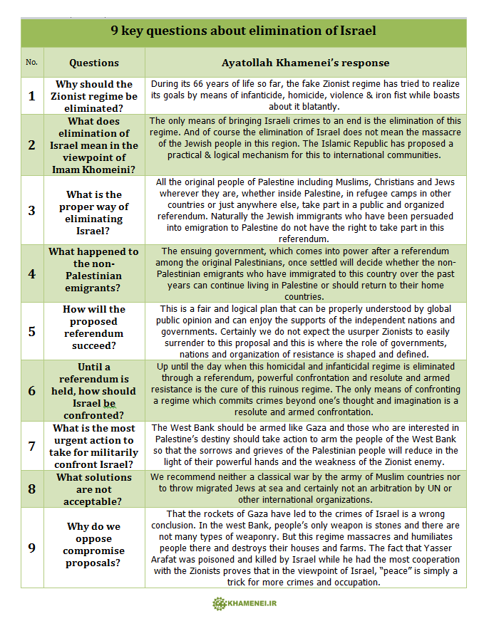 The leader of this country that is depicted by some as moderate, the Islamic State of Iran, has said in the last 48 hours: one, that he calls for the annihilation of Israel – his words, not mine; two, he gives nine ways and reasons of how and why Israel should be annihilated – his words, not mine. He’s publically calling for the annihilation of Israel as he is negotiating a nuclear deal with the P5+1 countries.